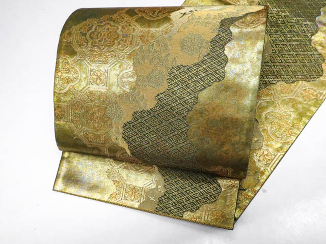 > 《京都一輝堂》リサイクル着物 袋帯 六通柄 金糸 蜀江文 正絹 25b07-1155