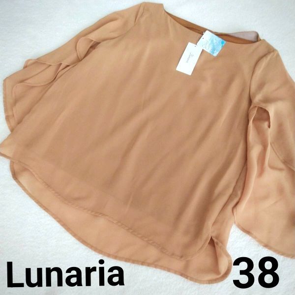 - □ タグ付き 未使用 Lunaria ルナリア シフォン ブラウス M ブラウン系 接触冷感 レディース トップス