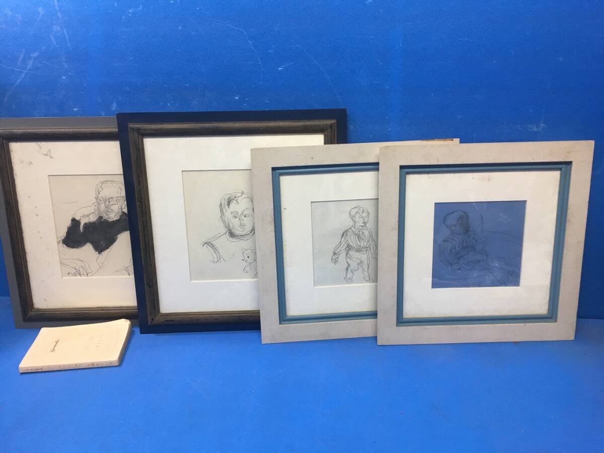 - kankando「原精一肉筆デッサン ヤタヤ額装4点 幼児/男児/幼子/男 各サイン入」《真作》