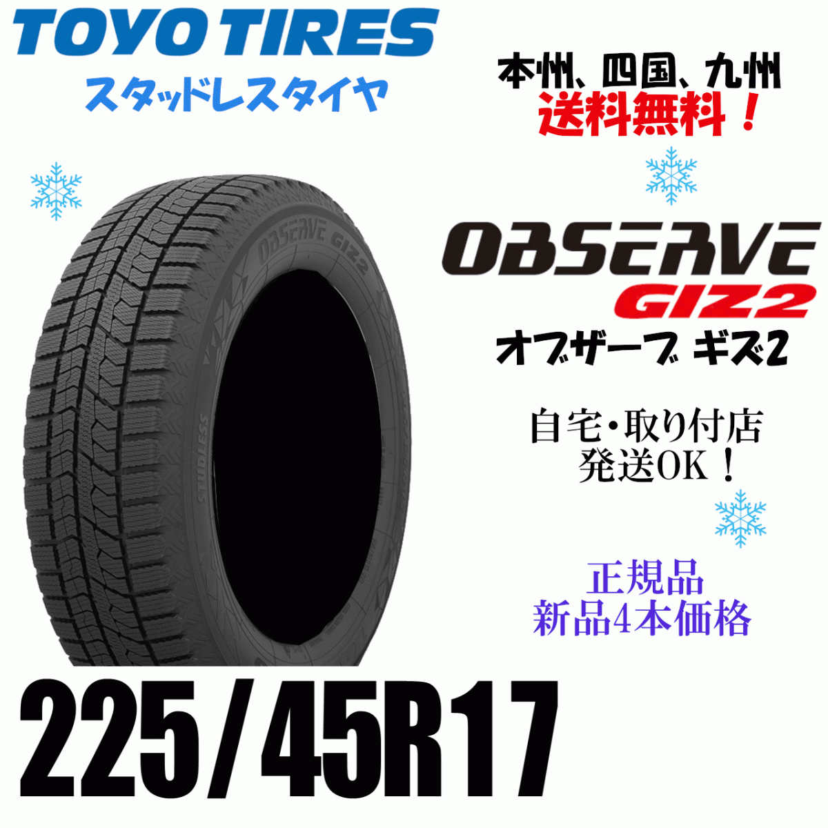 - 225/45R17 91Q 送料無料 新品 4本価格 トーヨー オブザーブ GIZ2 OBSERVE ギズ2 スタッドレスタイヤ 個人宅 ショップ 配送OK