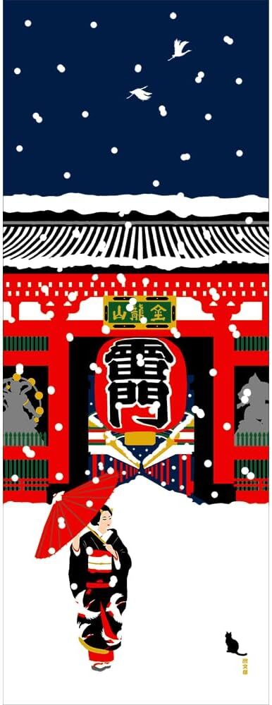 - 濱文様 絵手ぬぐい 浅草雪景色 お正月 冬 縁起 手拭い おしゃれ かわいい 日本製