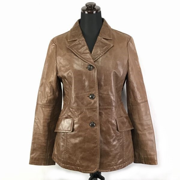 - ミッシェルクラン★本革/テーラードレザージャケット【38/レディースM/茶】牛革/両サイドポケット/シングルベント/MICHEL KLEIN◆BF103