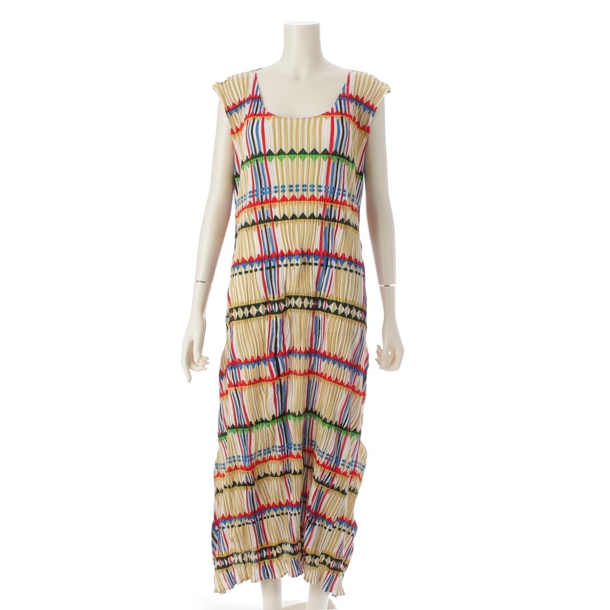 > プリーツプリーズ イッセイミヤケ 総柄 ノースリーブ ワンピース PP22-JH797 イエロー 3【中古】