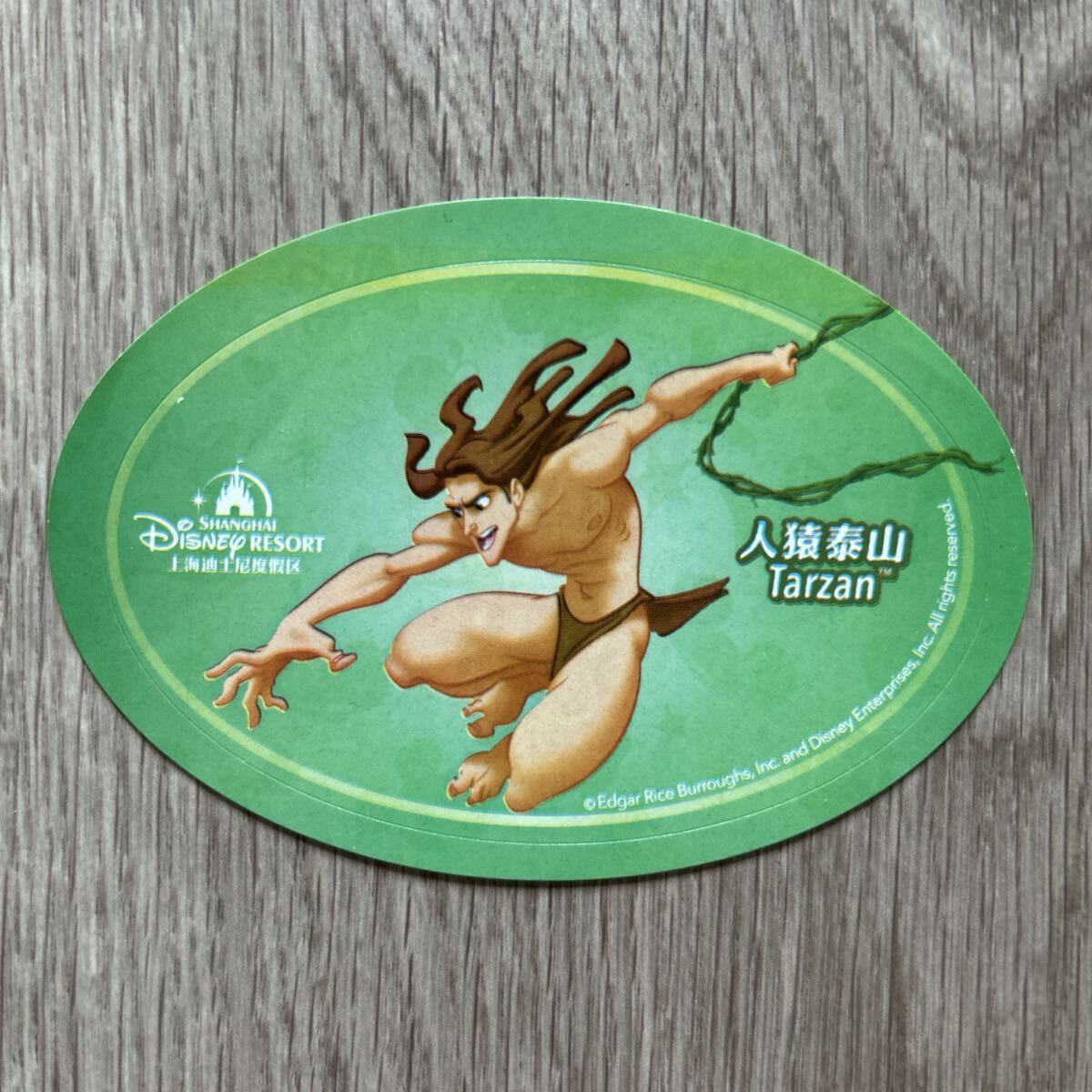 > ターザン シール ステッカー 楕円形 10×7センチ 非売品 レア品 上海ディズニーランド グリーン 緑色 Tarzan かわいい ディズニー