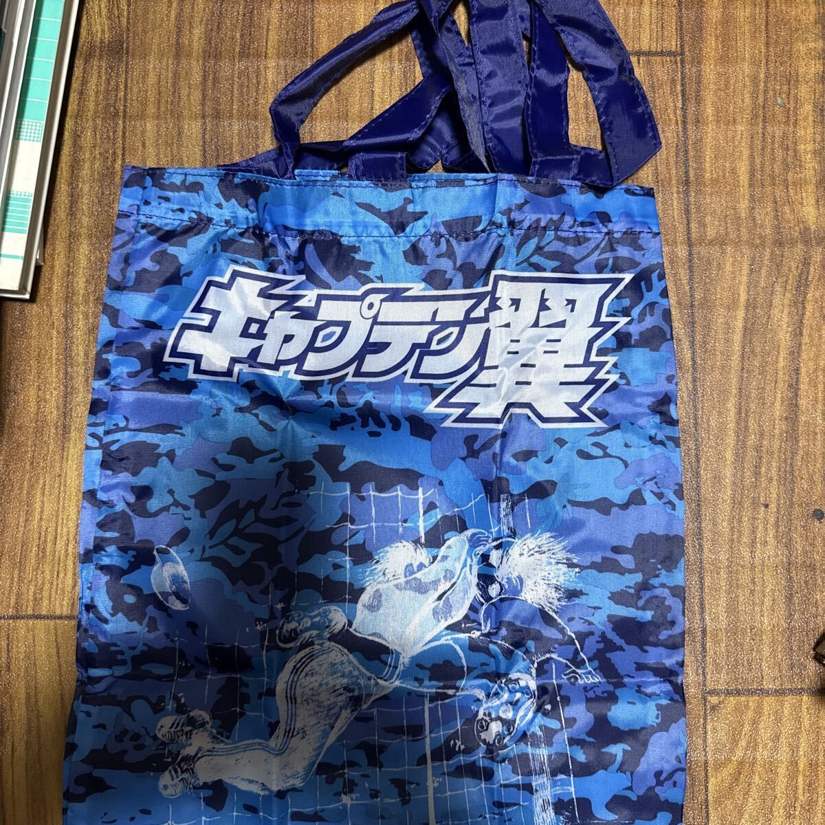 - 少年マガジン特別付録人気サッカー漫画キャプテン翼エコトートバッグ青いカモフラージュ柄背景主人公大空翼ボールを蹴っているイラストレア
