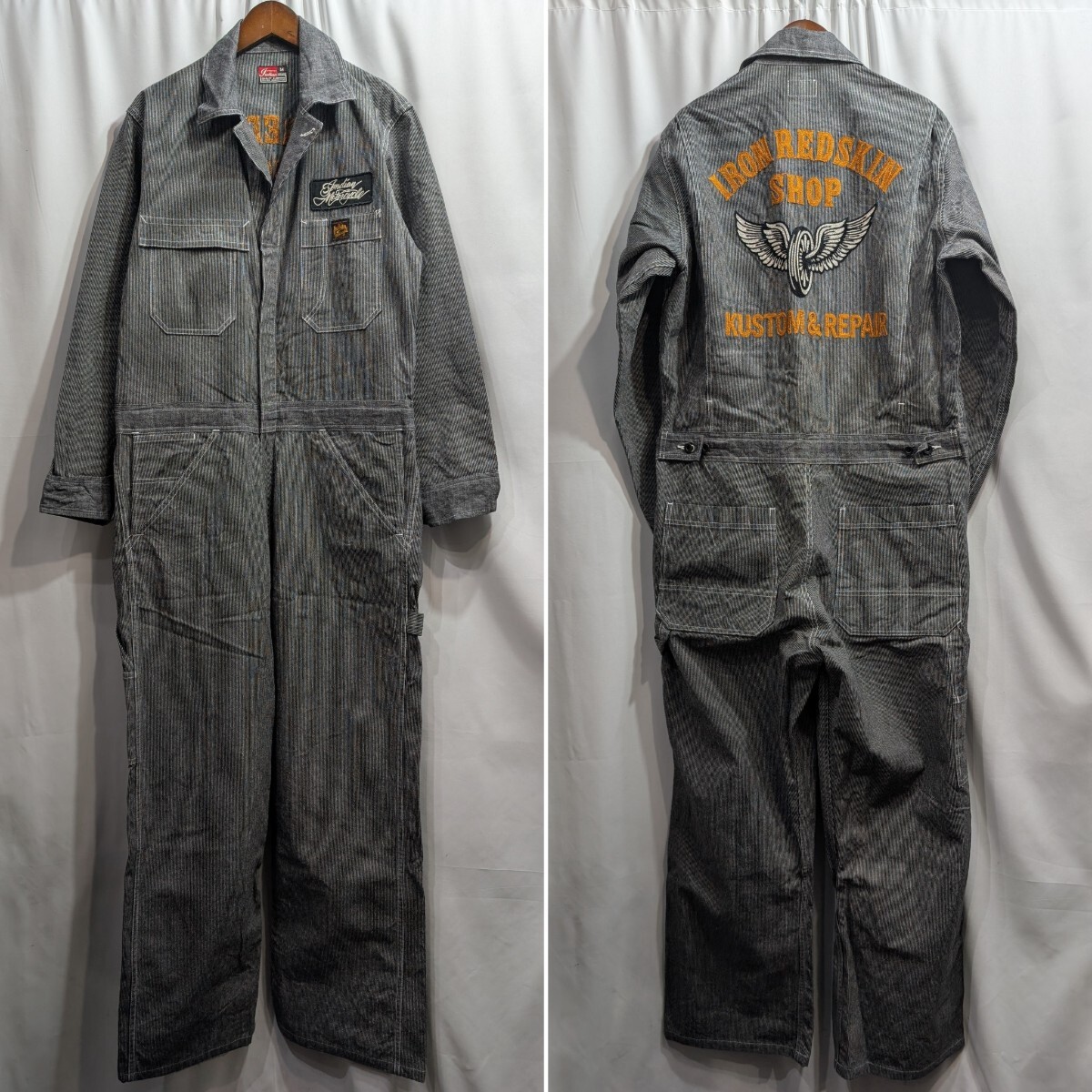 > INDIAN MOTORCYCLE インディアンモーターサイクル ヒッコリーストライプ オールインワン つなぎ M メンズ ワークパンツ/バンソン/ショット