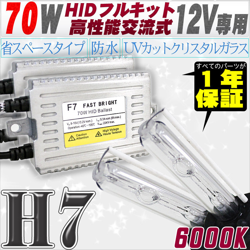 - 高性能 HIDキット 70W H7 6000K 【交流式バラスト&クリスタルガラスバーナー】 12V用