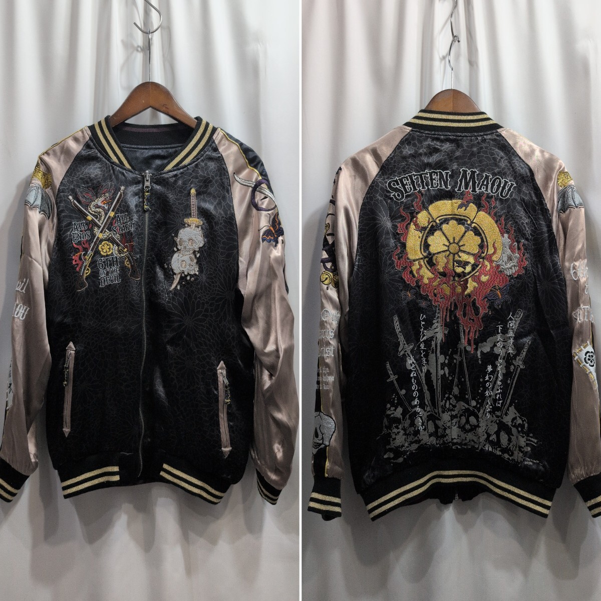 > 限定 雅結×戦武 コラボ レーヨン 刺繍 スカジャン M メンズ リバーシブル ブルゾン ジャケット/東洋/絡繰魂/抜刀娘/花旅楽団