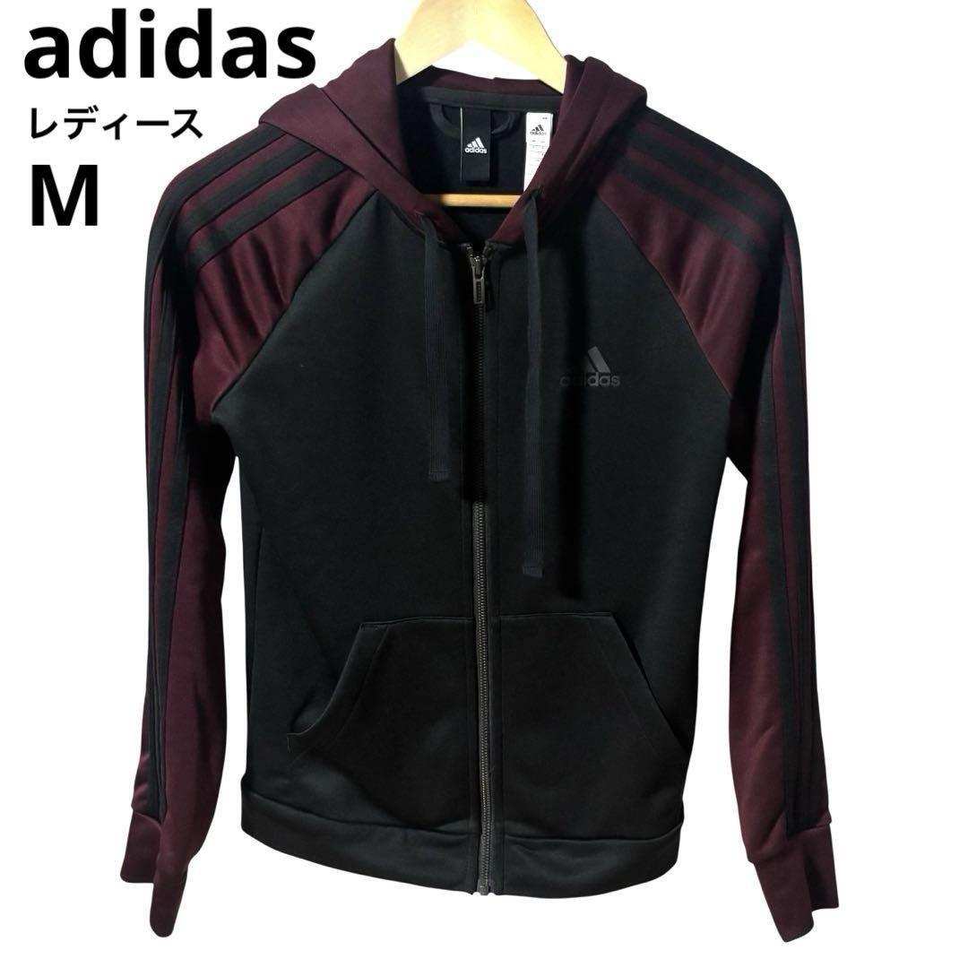 - adidas フルジップ 2トーン ジャージパーカー レディース 黒紫
