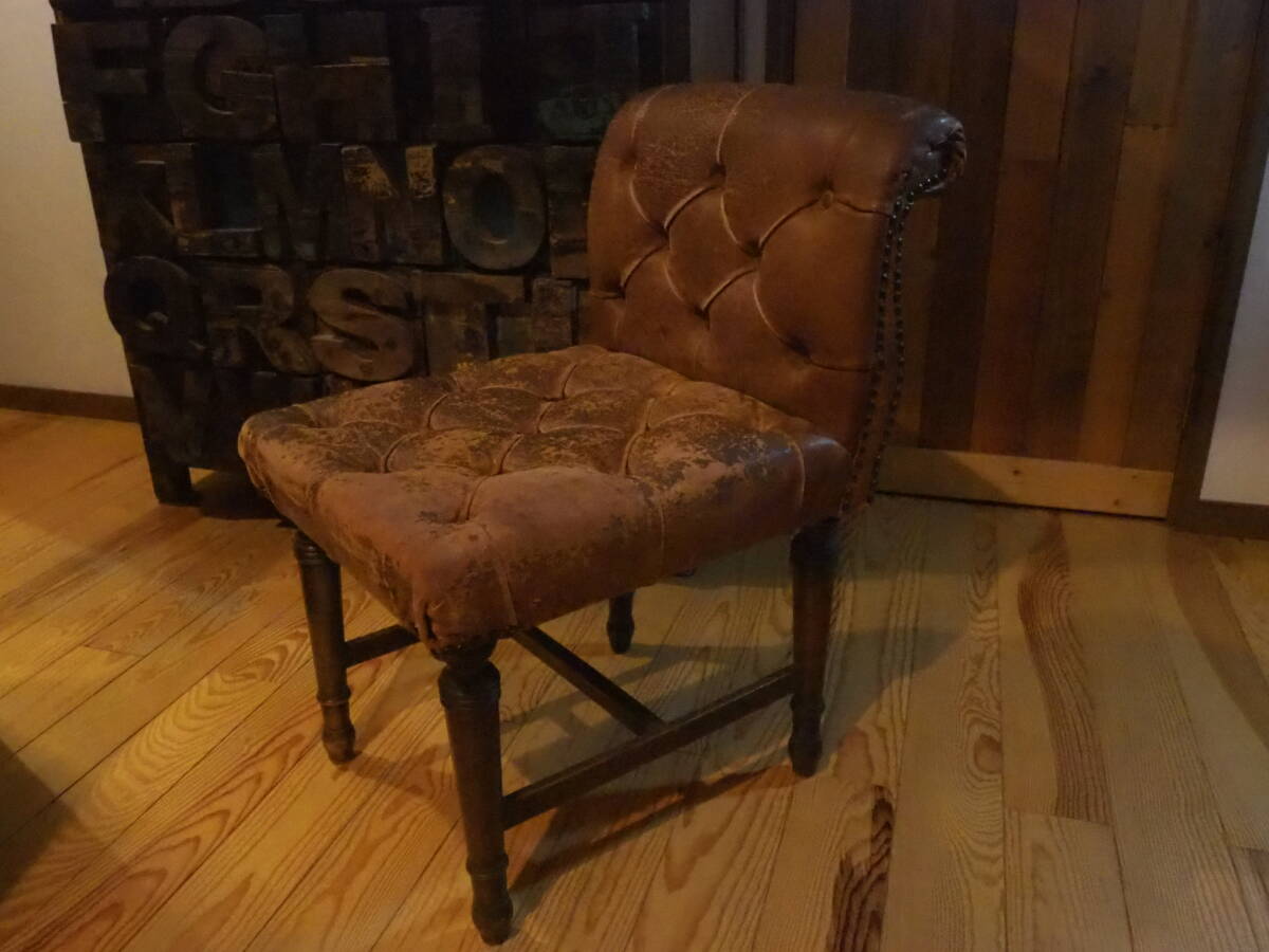 - 【フランス蚤の市本革ベンチチェア】1960s英国アンティーク天然木ダイニング無垢材レザー椅子古道具インテリア骨董テーブル机デスク