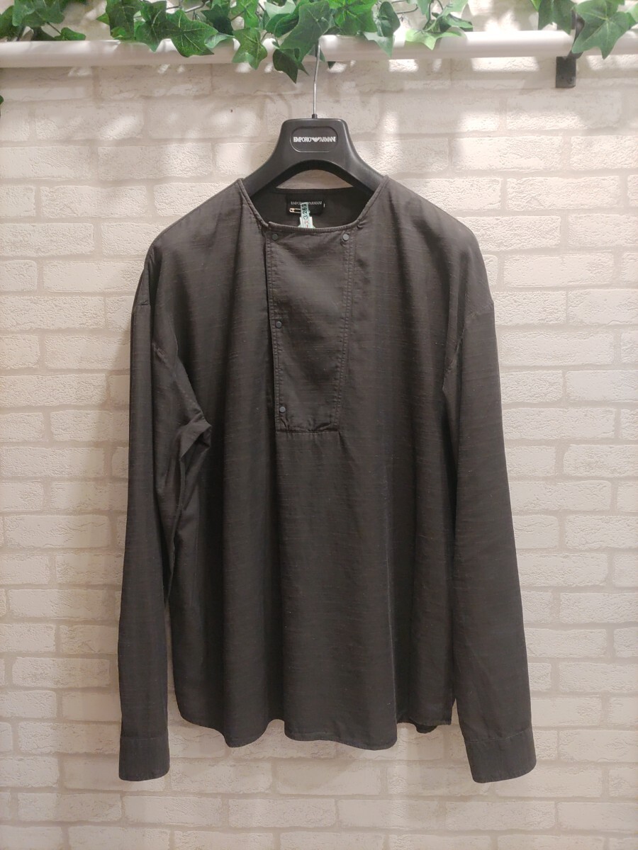 - 【クリーニング済・スピード配送】EMPORIO ARMANI エンポリオアルマーニ プルオーバーコットンリネンシャツ 長袖 ダークグレー M