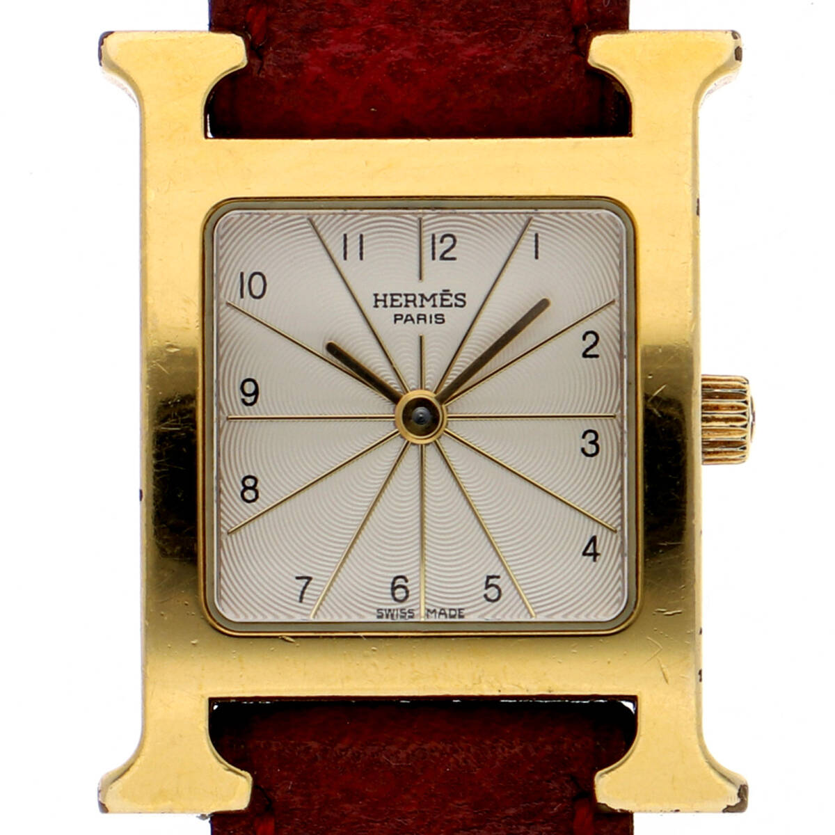 > HERMES エルメス HH1.201 Hウォッチ シルバーダイヤル レザー/GF クオーツ レディース【136054】