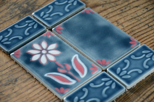 - NO.445 古いレトロなタイル 1/6シート 未使用品 検索用語→A250g花柄昭和レトロビンテージアンティークオブジェ材料リフォーム鍋敷コースタ
