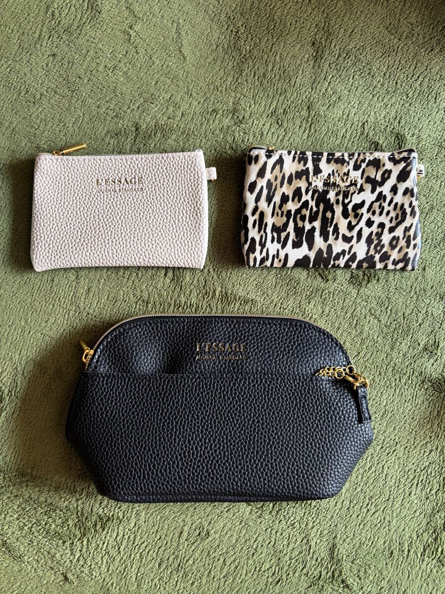 - L'ESSAGE ポーチセット 黒・白・ヒョウ柄 3点セット オトナミューズ