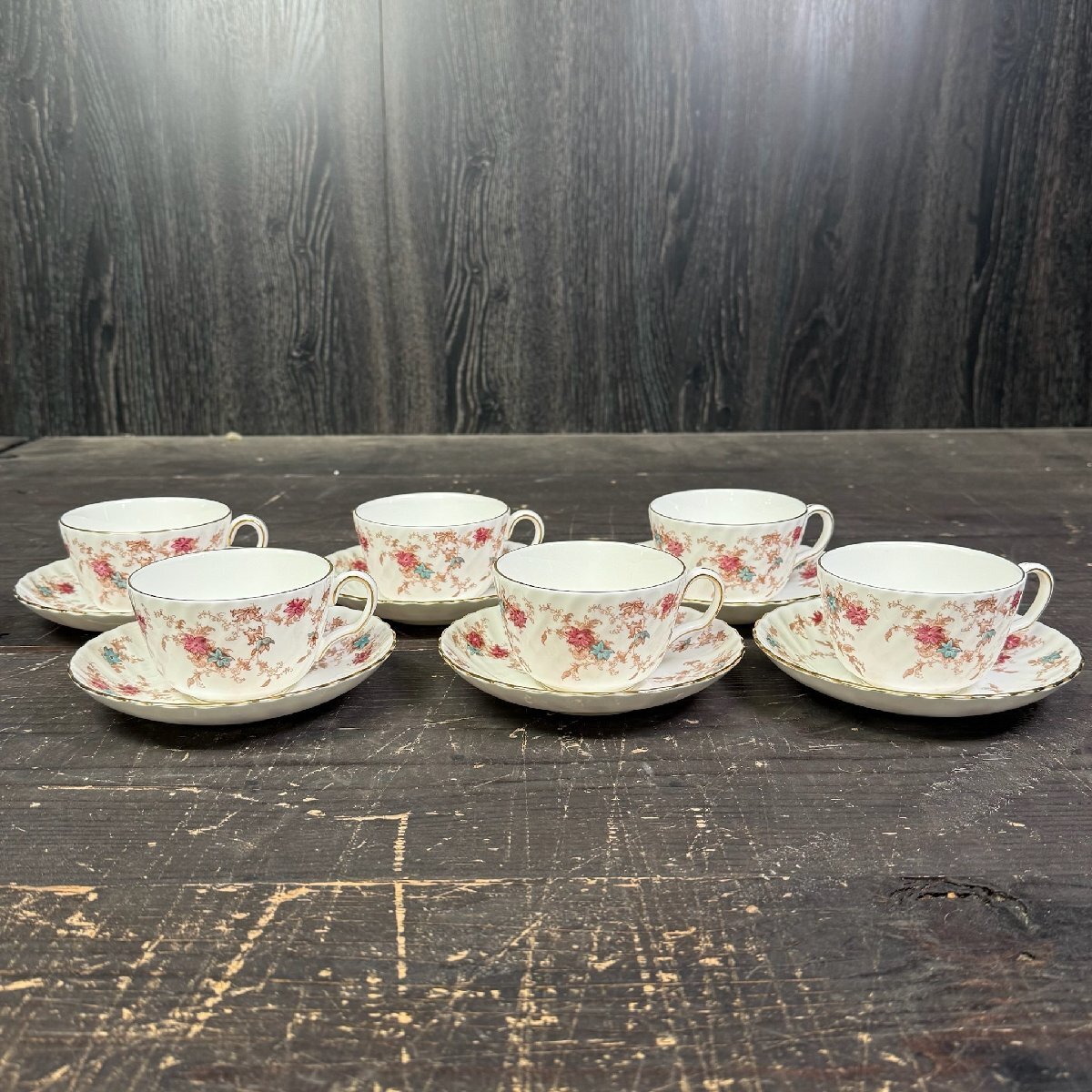 > F2848 MINTON ANCESTRAL ミントン アンセストラル カップ&ソーサー 6客 セット 花柄 金彩