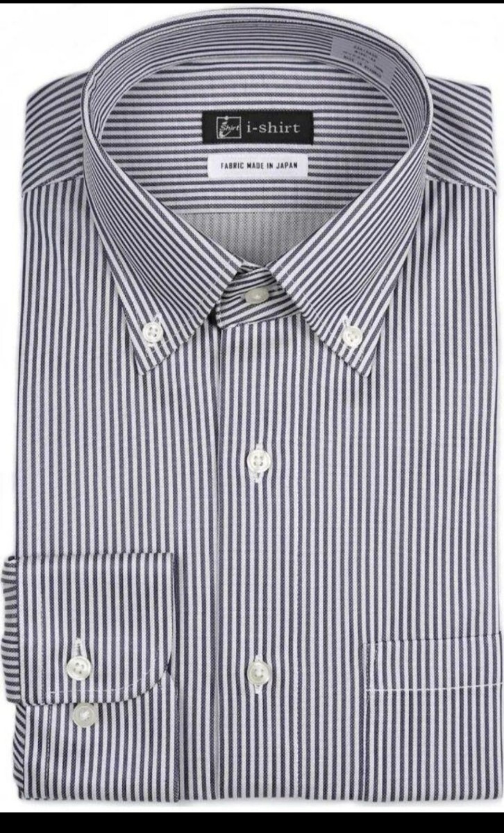 - 【新品! 送料無料!!】ishirts ネイビー ロンドンストライプ 39x82 長袖ボタンダウン