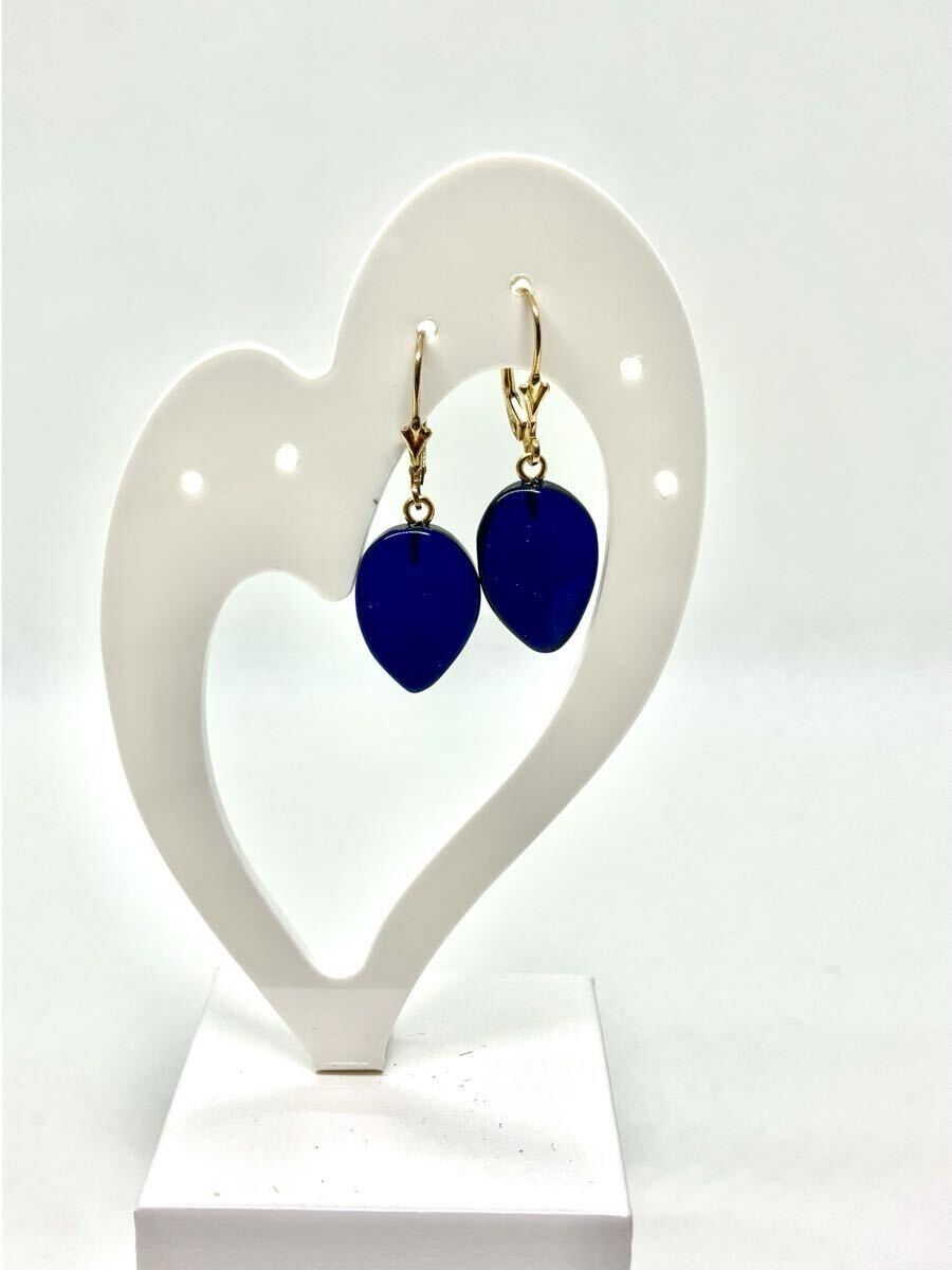 - 【新品】リトアニア産ブルー琥珀ピアス/ブルーアンバー/こはく/コハク/揺れるデザイン/フックタイプ/天然石