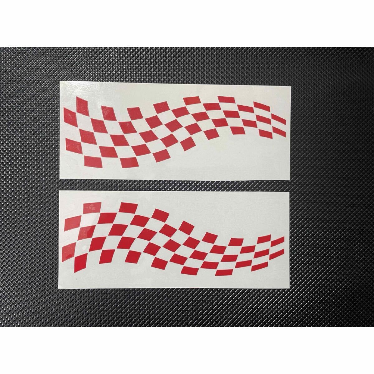 - チェッカーフラッグ レーシングフラッグ チェック柄 カッティングステッカー 左右セット 防水 耐候性 転写シール 赤色 色変更可能