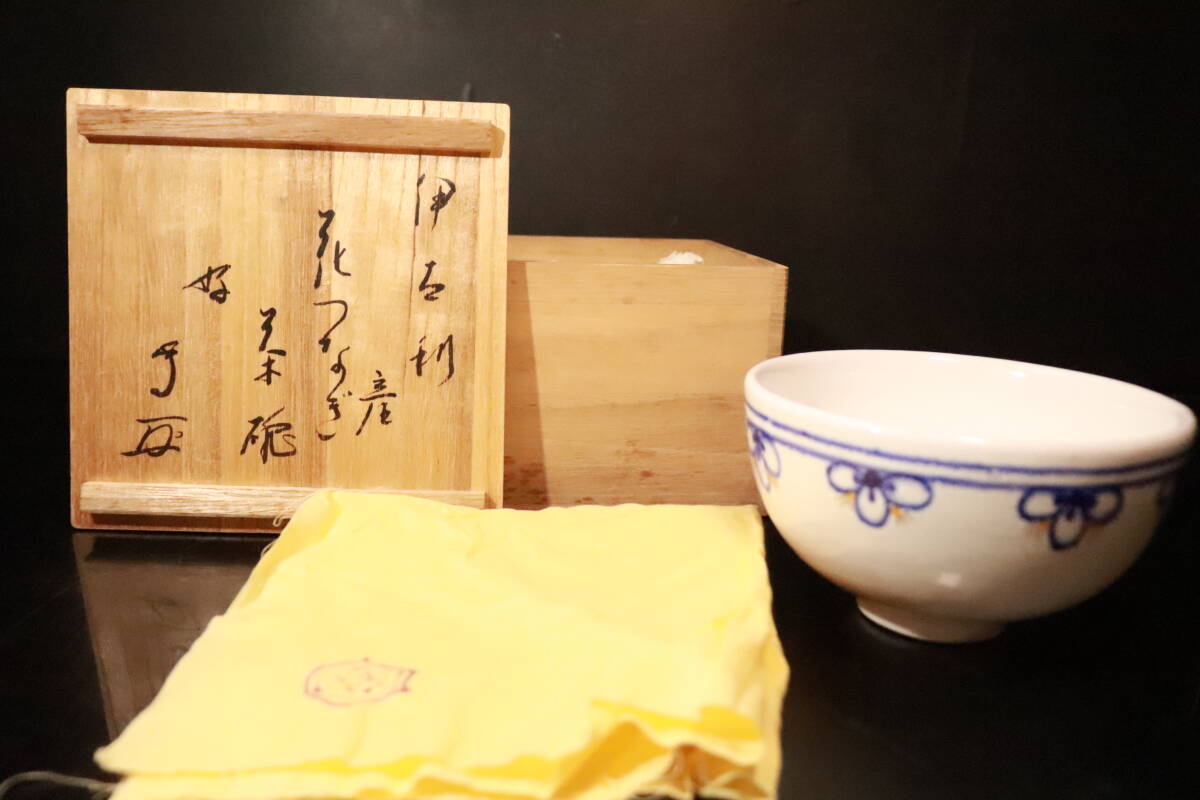- 【hiro】武者小路千家 官休庵十三代有隣斎徳翁 書付 伊太利FAENZA 造 花つなぎ茶碗 共箱 ★検索★ 炉 建水 鉄瓶 茶碗 香炉 茶道具