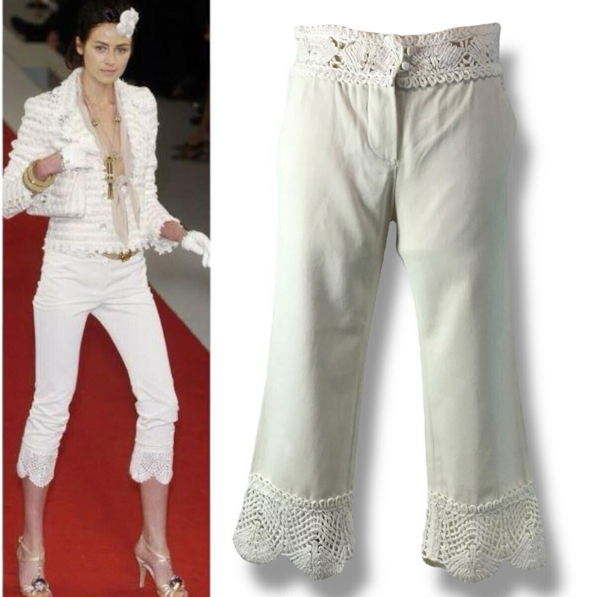 > d11 良品レア Vintage CHANEL 05P シャネル サブリナパンツ ホワイト クロップドパンツ P25944 V16021 イタリア製 34 コットン100% 正規品