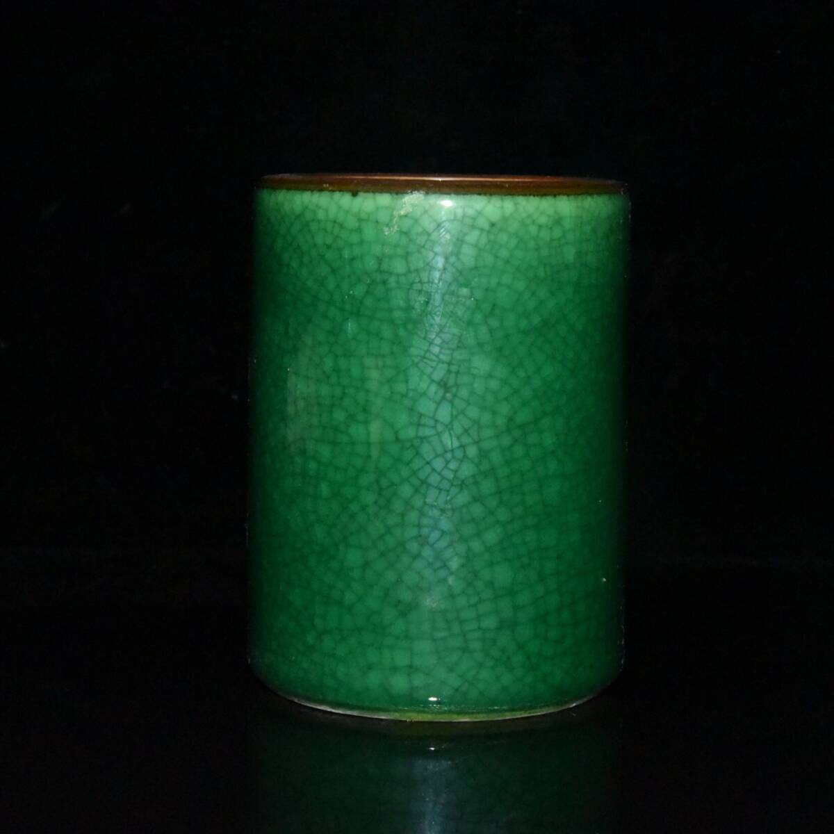 - 蔵友旧蔵出 清 乾隆年製款 蘋果綠釉 開片 筆筒 稀少珍品 貴重品 古陶瓷品 置物 古賞物 中国古玩 中国古美術品