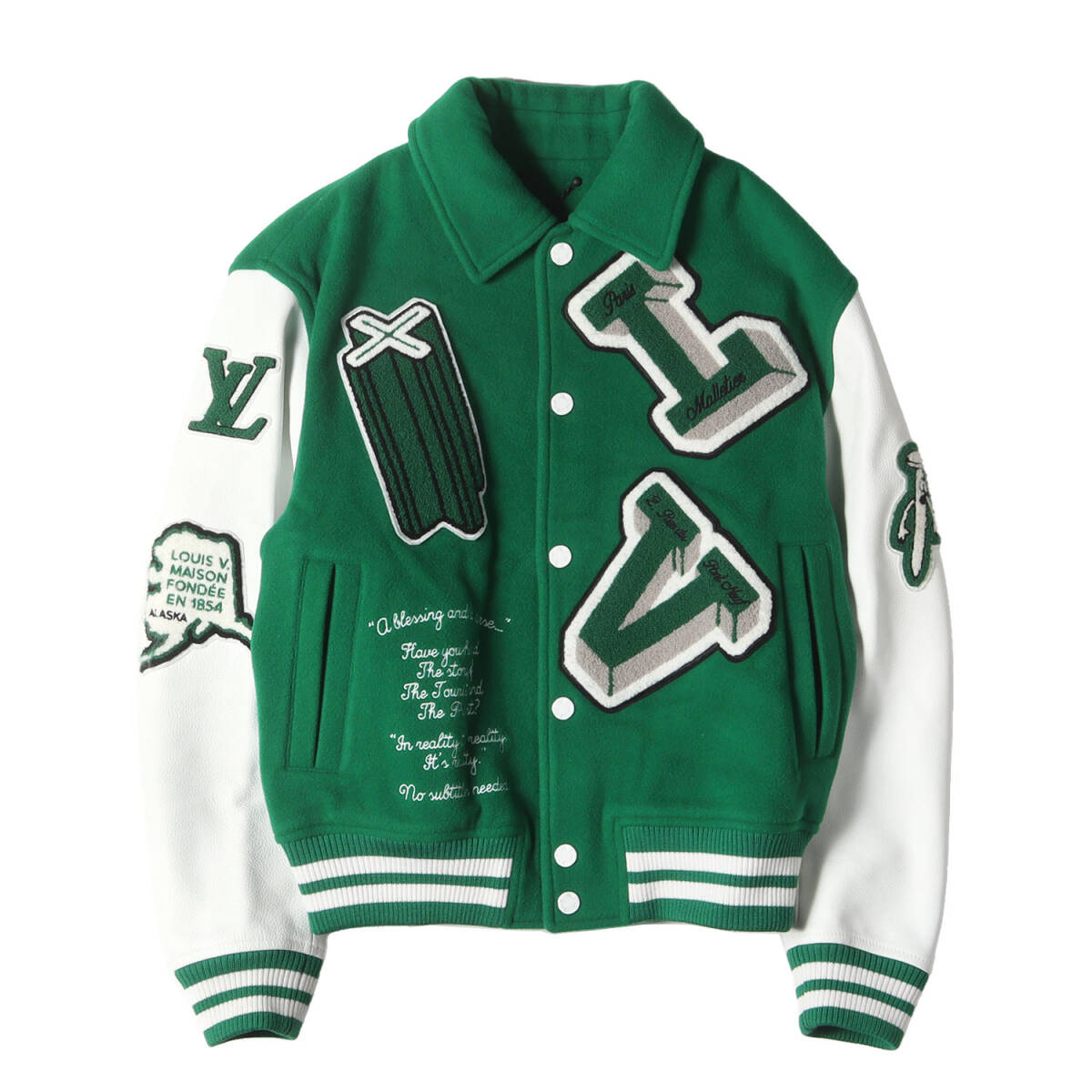 > 【美品】LOUIS VUITTON ルイヴィトン ジャケット グリーン ホワイト サイズ:46 | 21AW ロゴワッペン 刺繍 メルトン バーシティ ジャケット