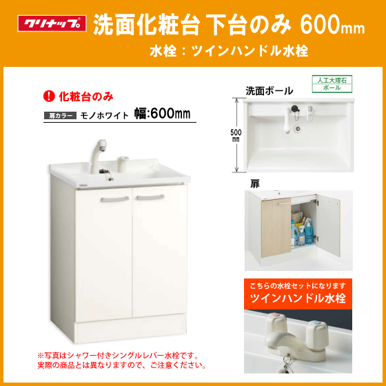 - 洗面化粧台 下台のみ(ミラー部なし) ツインハンドル水栓 幅:600mm BGAL60TNTWWJTS クリナップ BGAシリーズ