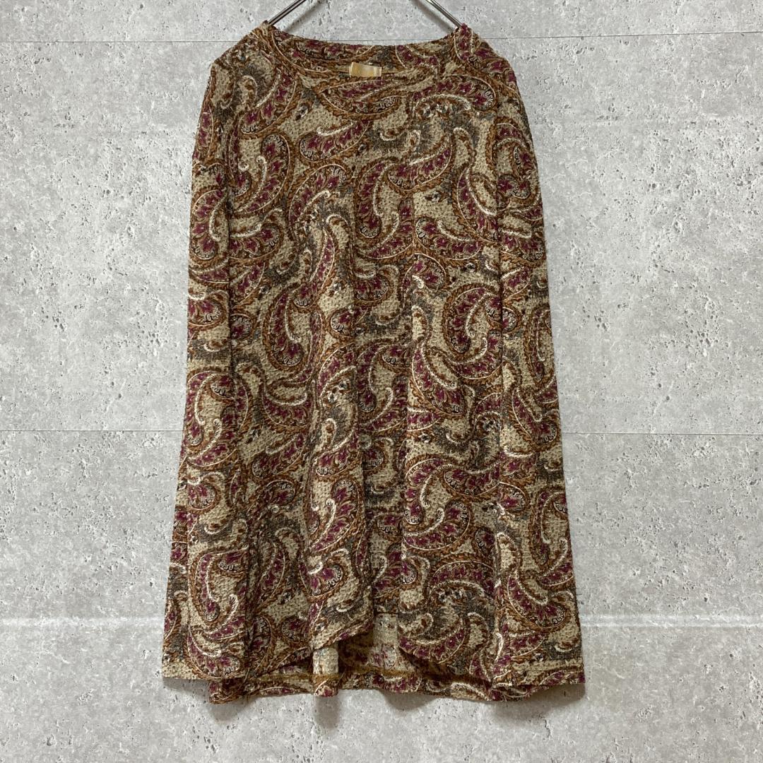 - D.I.I CLUB(one)ペイズリー柄長袖カットソー*総柄*昭和レトロ*茶色