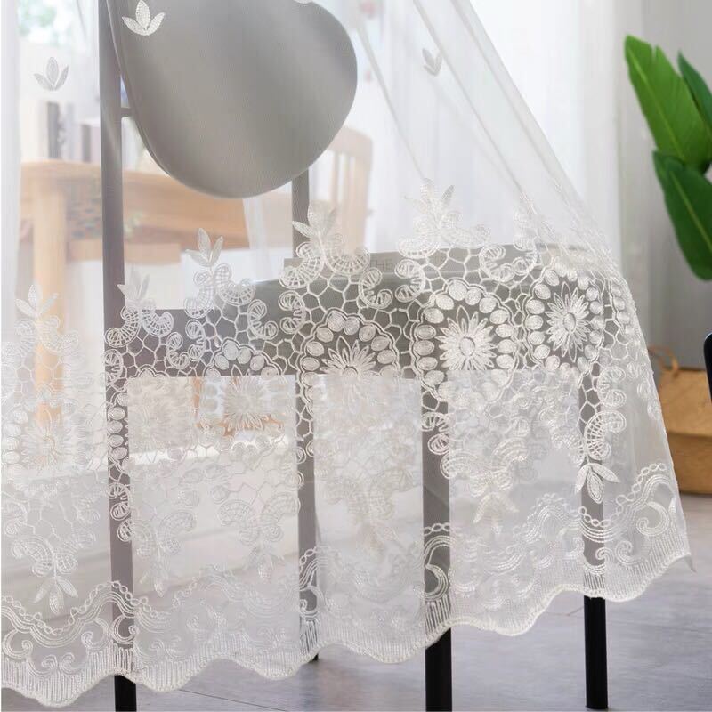 - レースカーテン 幅150センチX丈200センチ 2枚入り 三つ葉 刺繍 ホワイト 白 両開き シンプル エレガント 上品 洗える