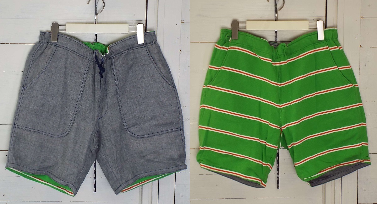 > T3158〇VOO(ヴォー)ハーフパンツ ショートパンツ 短パン スウェット リバーシブル グレー×グリーン サイズ2 サンプル品 品質タグなし