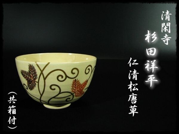 > ∴名工館∴【送込!清閑寺 杉田 祥平】色絵 仁清 松唐草画 茶碗 茶道具 師覚入 共箱 無傷 真作保障 送料無料 8 c316