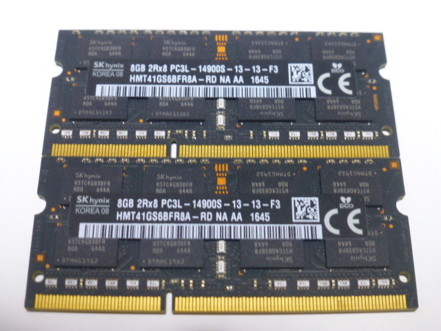 - ノートパソコン用メモリ 両面チップ SK hynix 低電圧 1.35V DDR3L-1866 PC3L-14900S 8GBx2枚 合計16GB 起動確認済みです①