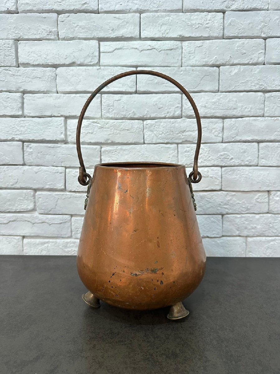 > 4830 ベルギー アンティーク 炭入れ バケツ オブジェ インダストリアル カントリー アウトドア 高さ26cm 幅46cm 奥行き24cm baa