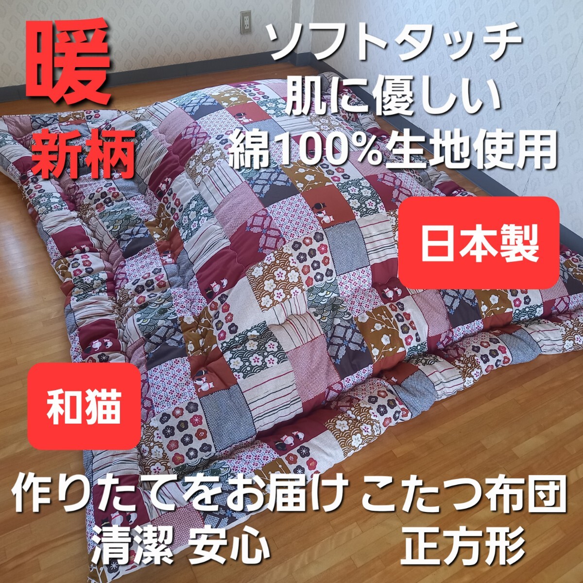 - 暖 ソフトタッチ 綿100% 正方形 厚掛 こたつ掛布団 日本製 和猫 (羽毛布団 掛布団 敷き布団 枕)出品中です。