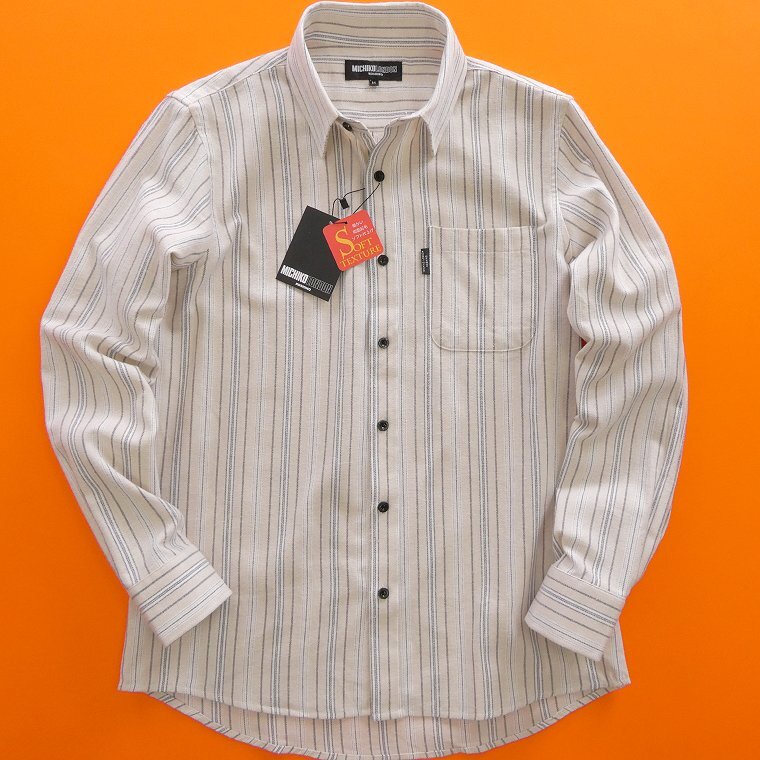 - 新品 ミチコロンドン 25秋冬 コットン フランネル シャツ 【ml8w-h501_BE_L】 MICHIKO LONDON 長袖 ストライプ 起毛 ビエラ ネルシャツ
