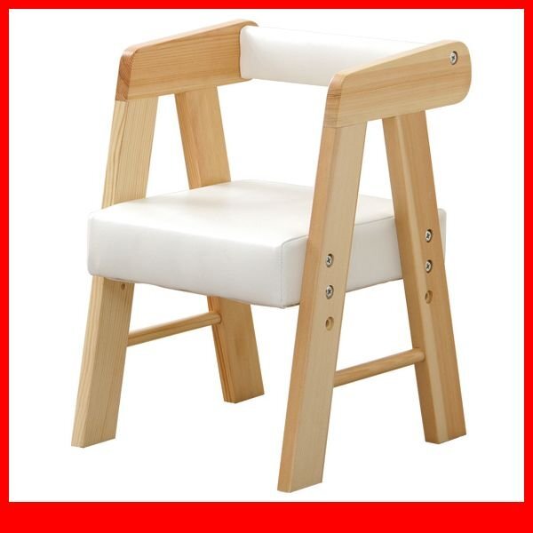 > ベビー キッズ★ロータイプ キッズチェア 椅子/2段階高さ調整 天然木 PVC座面 コンパクト 軽量 手入れ簡単/ホワイト/a4