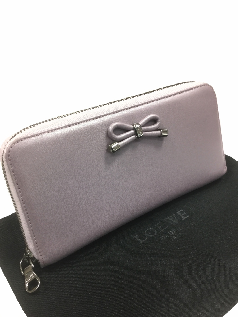 > 【質屋】ロエベ/LOEWE/ラウンドファスナー長財布/リボン/リボンモチーフ/レザー/ロゴ/バイカラー/ライラック/薄紫色/参考定価7.9万↑