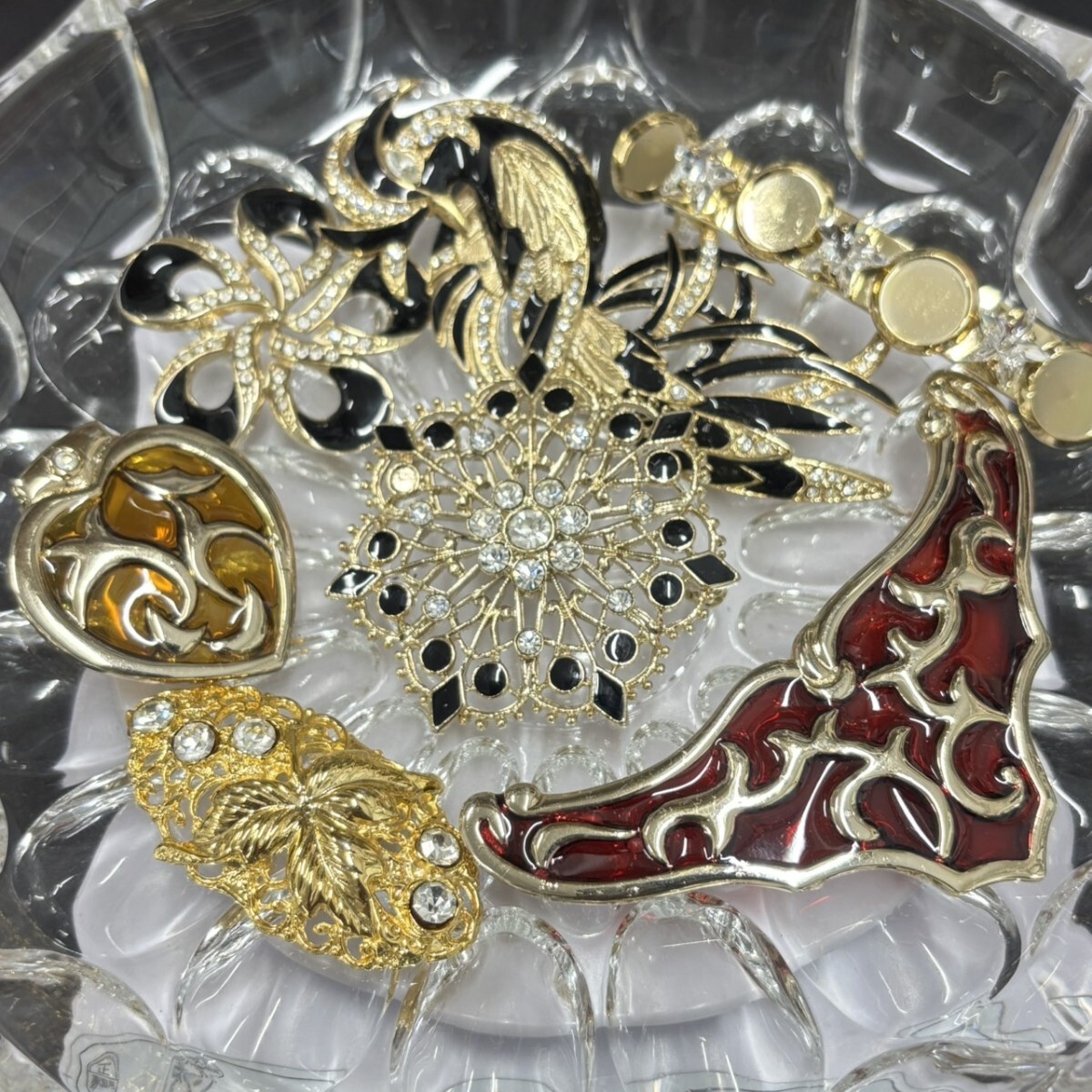> L497☆未使用 大量 SWAROVSKI スワロフスキー 金具パーツ ハート 花 フラワー 3~8cm ゴールド×クリスタル ヴィンテージ B-136