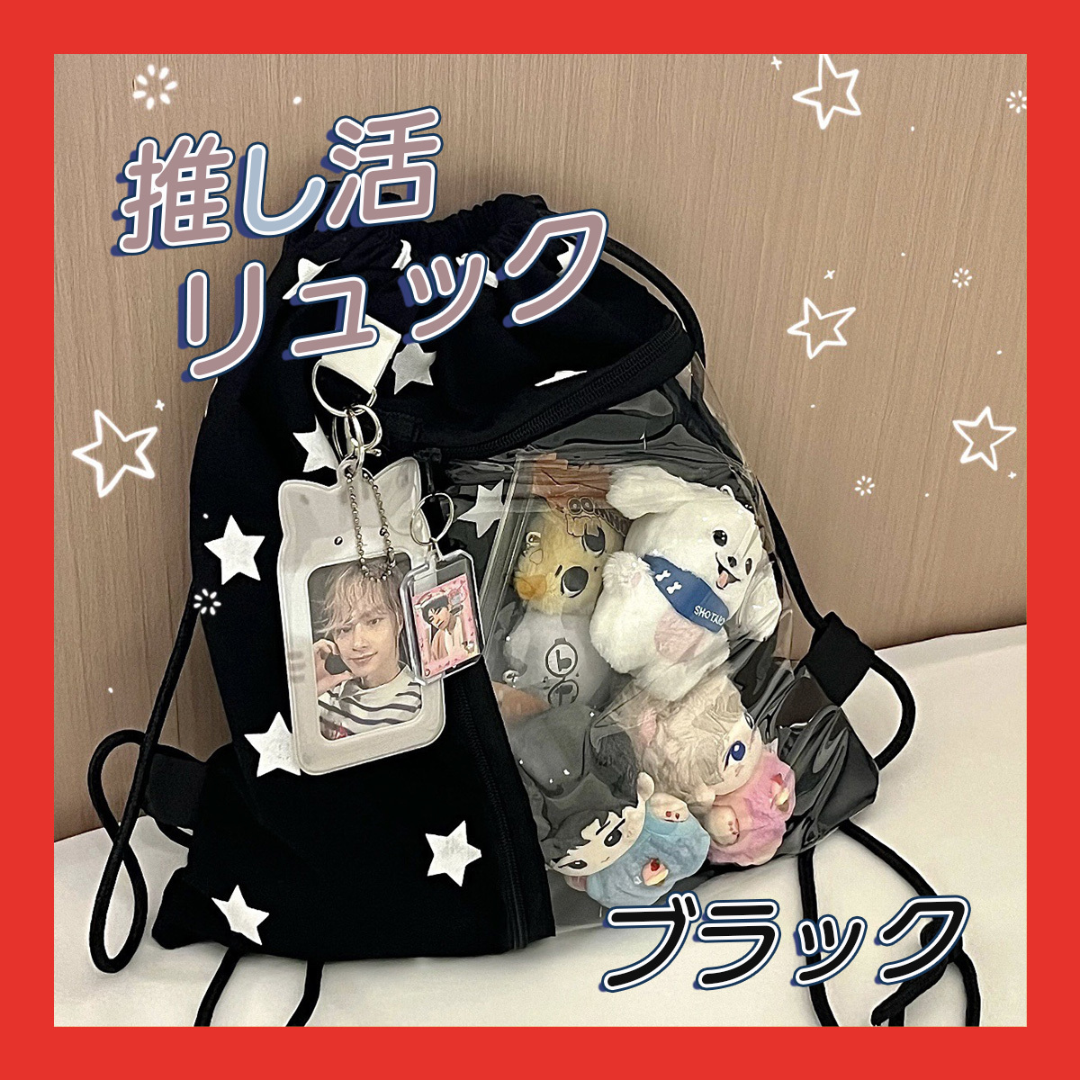- ナップサック ブラック 星 黒 リュック 痛バ 痛リュック 人形 ポケット 推し活
