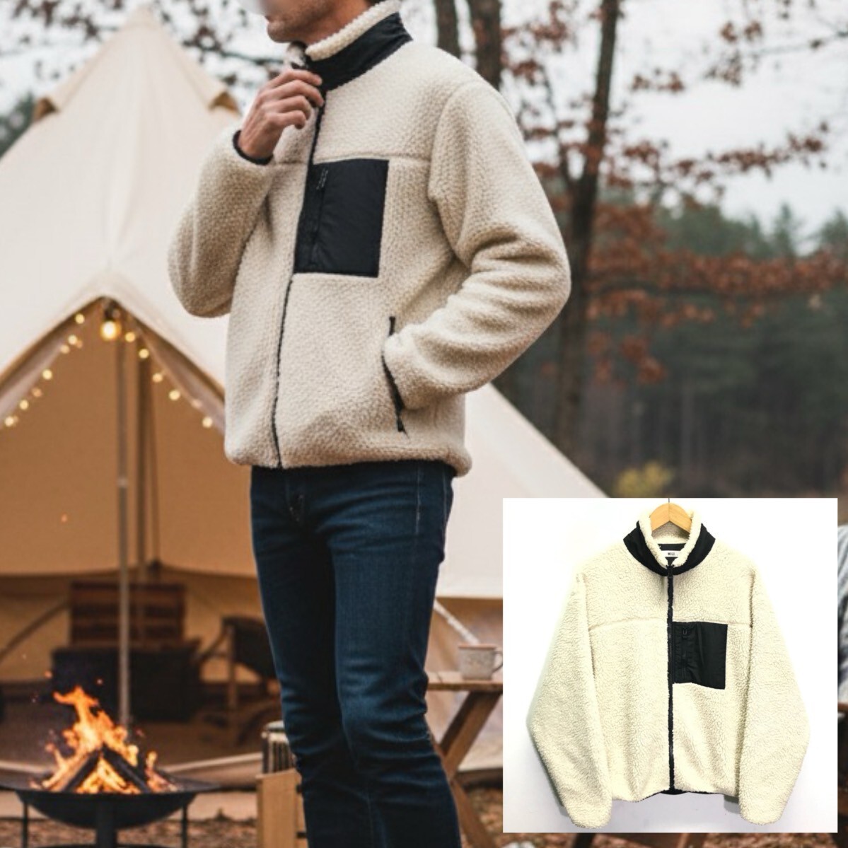 > 秋冬定番アイテム◎【WEGO】ウィゴー ボア フリース ジャケット アウター アウトドア キャンプ レトロ 古着コーデ アイボリー L /Y33495ii