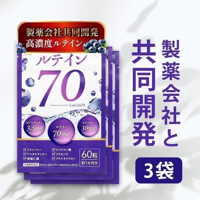 - ルテイン70 60粒 3袋 高濃度ルテイン70mg ビルベリー30mg