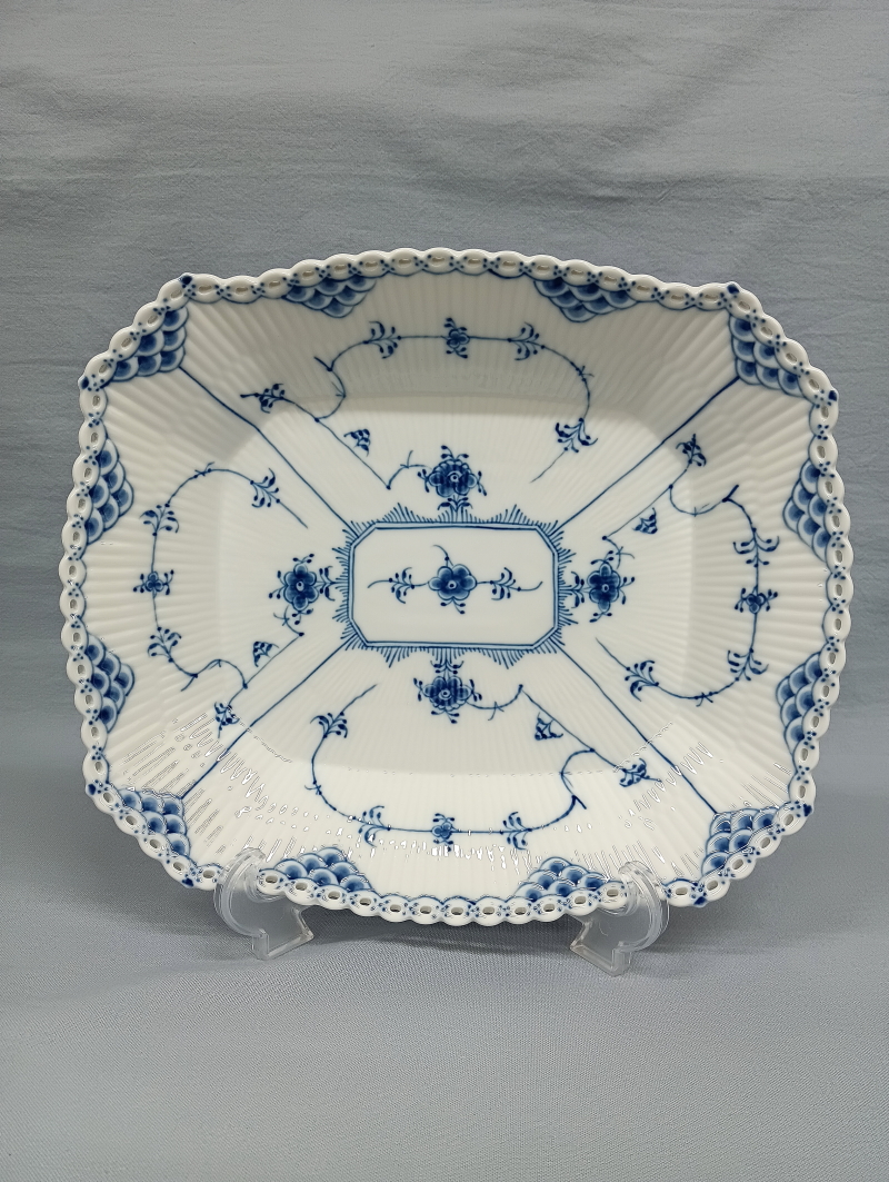 > 10908■ 新品未使用 ロイヤルコペンハーゲン ブルーフルーテッド フルレース スクエアディッシュ デンマーク製 皿