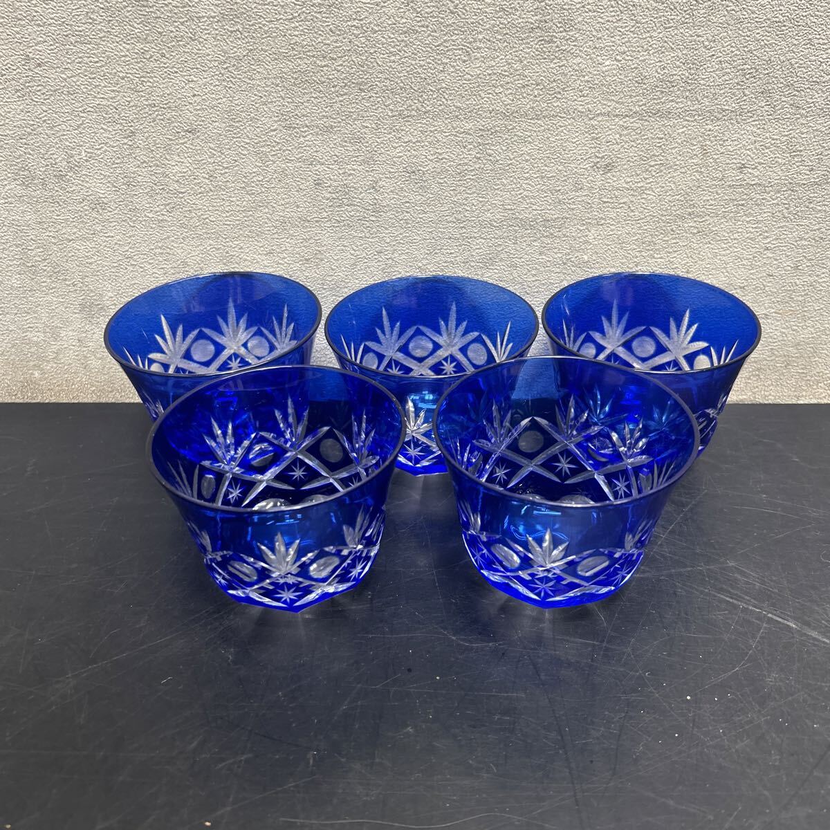 - 切子グラス 5客セット 昭和レトロ ヴィンテージ 切子 江戸切子 ブルー コップ 食器 ロックグラス