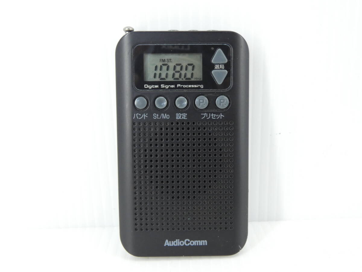> ★☆AudioComm ワイドFM対応 FM/AMポケットラジオ RAD-P350N-K 動作品 オマケ新品電池付き☆★