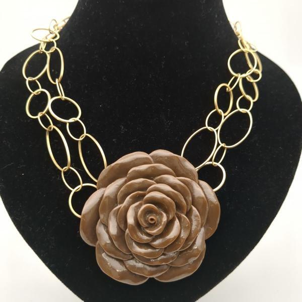 - ローズハイランド ネックレス バラモチーフ ブラウン 茶 アクセサリー パリ ROSE HAYLLAND 中古 ◆2008