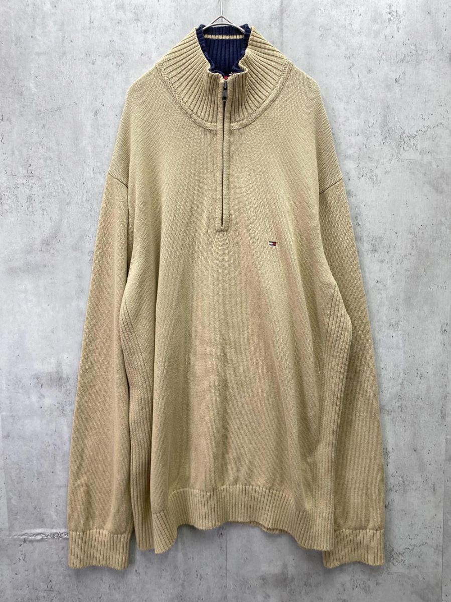 - TOMMY HILFIGER トミーヒルフィガー ハイネック ハーフジップ ニット セーター sizeXL/ベージュ ◆■