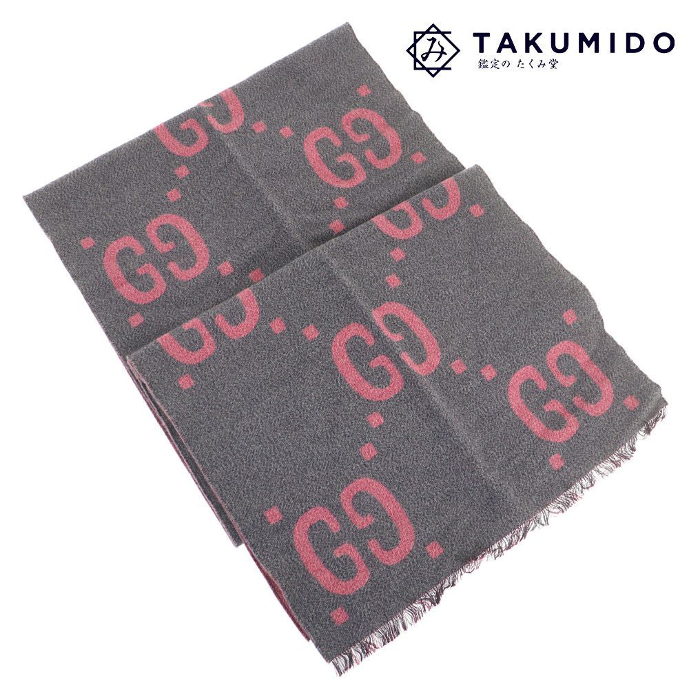 > グッチ GUCCI マフラー GGジャガード 558007 グレー ピンク ウール シルク 中古A 282568