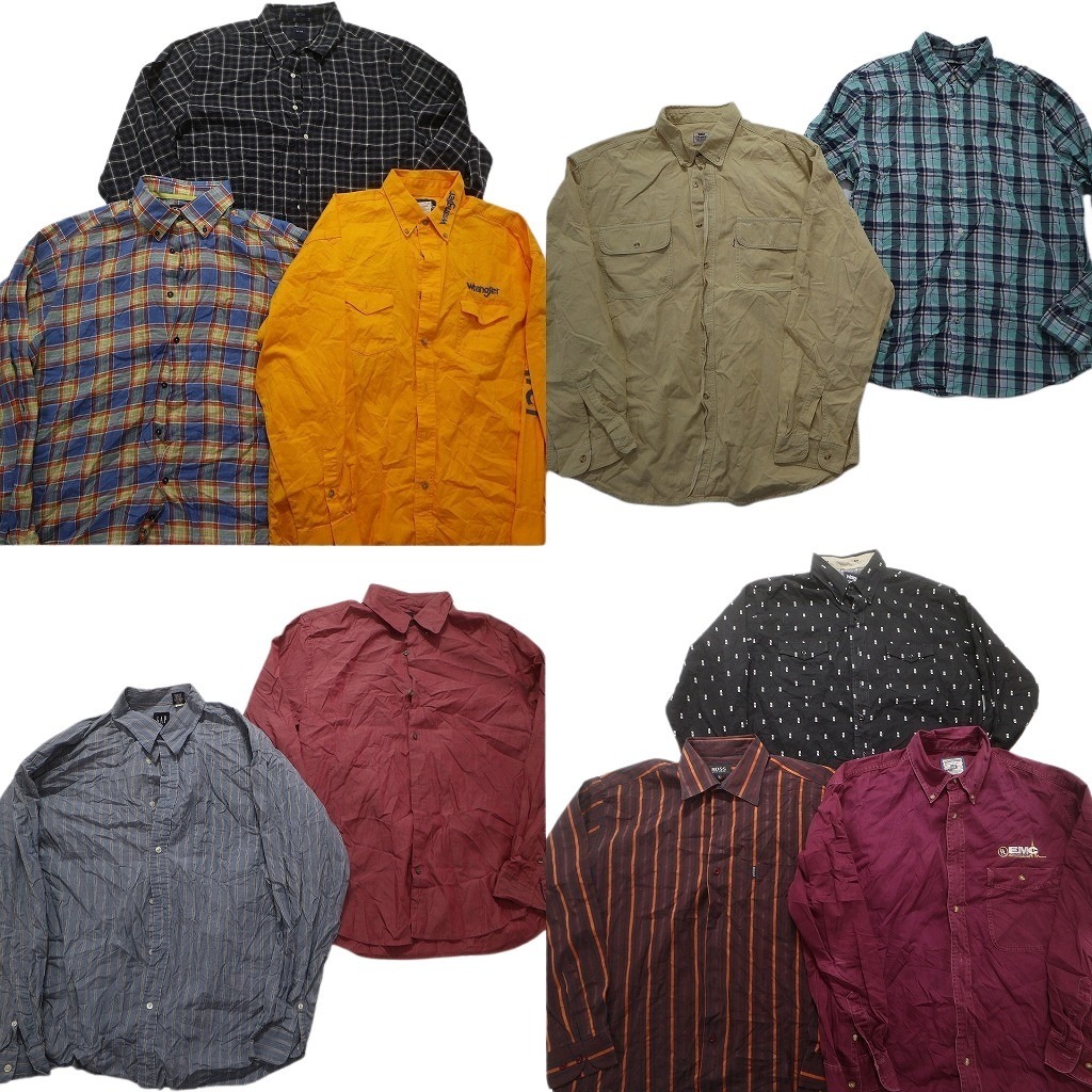 - 古着卸 まとめ売り ブランドMIX 長袖シャツ 10枚セット (メンズ XL ) ギャップ ラングラー Lee アメリカンイーグル NC1871 1円スタート