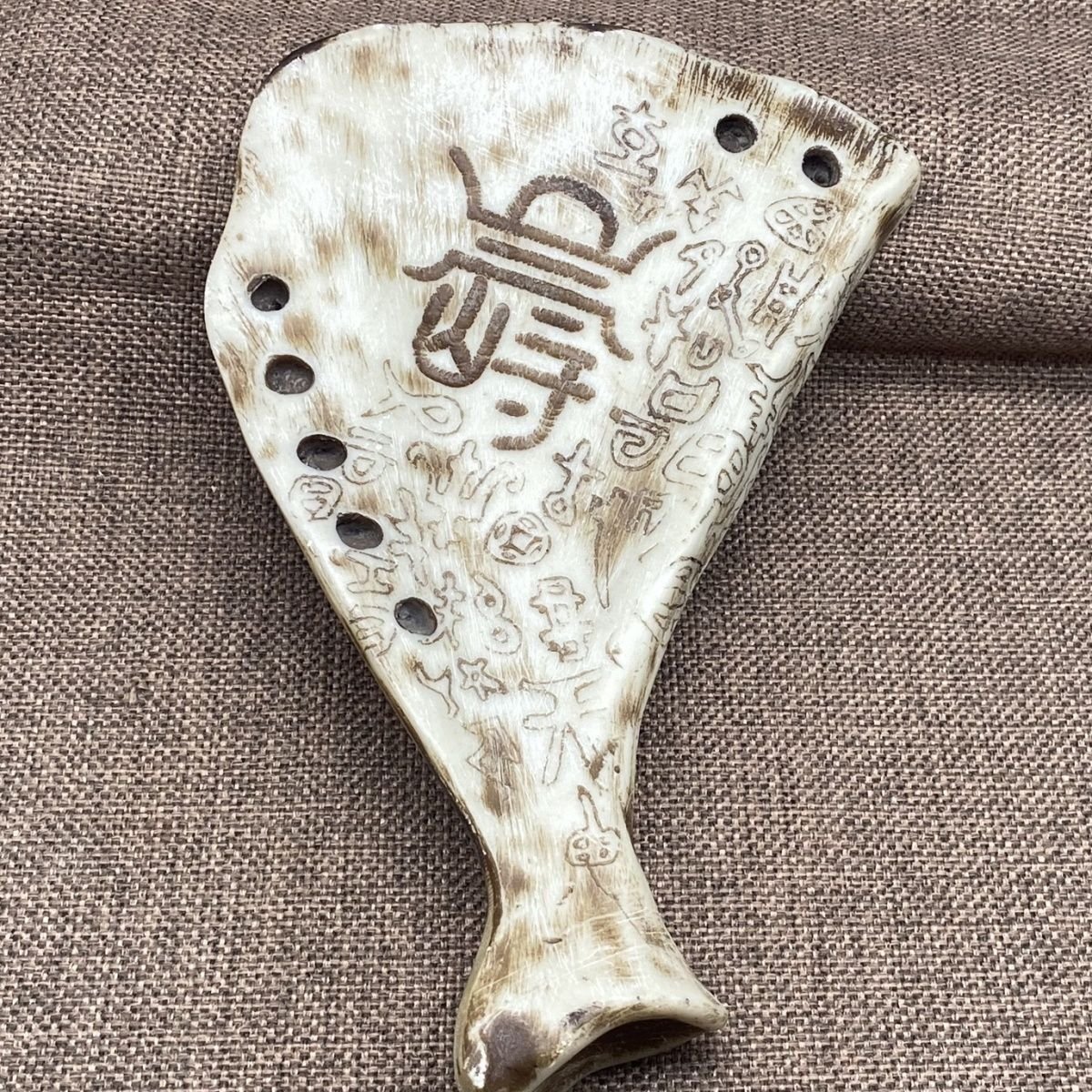 - 甲骨文 甲骨文字 中国古代文字 亀甲 彫刻 工芸品 樹脂製 腿骨 美術品 鑑賞 置物 見本 学習用 zh1383