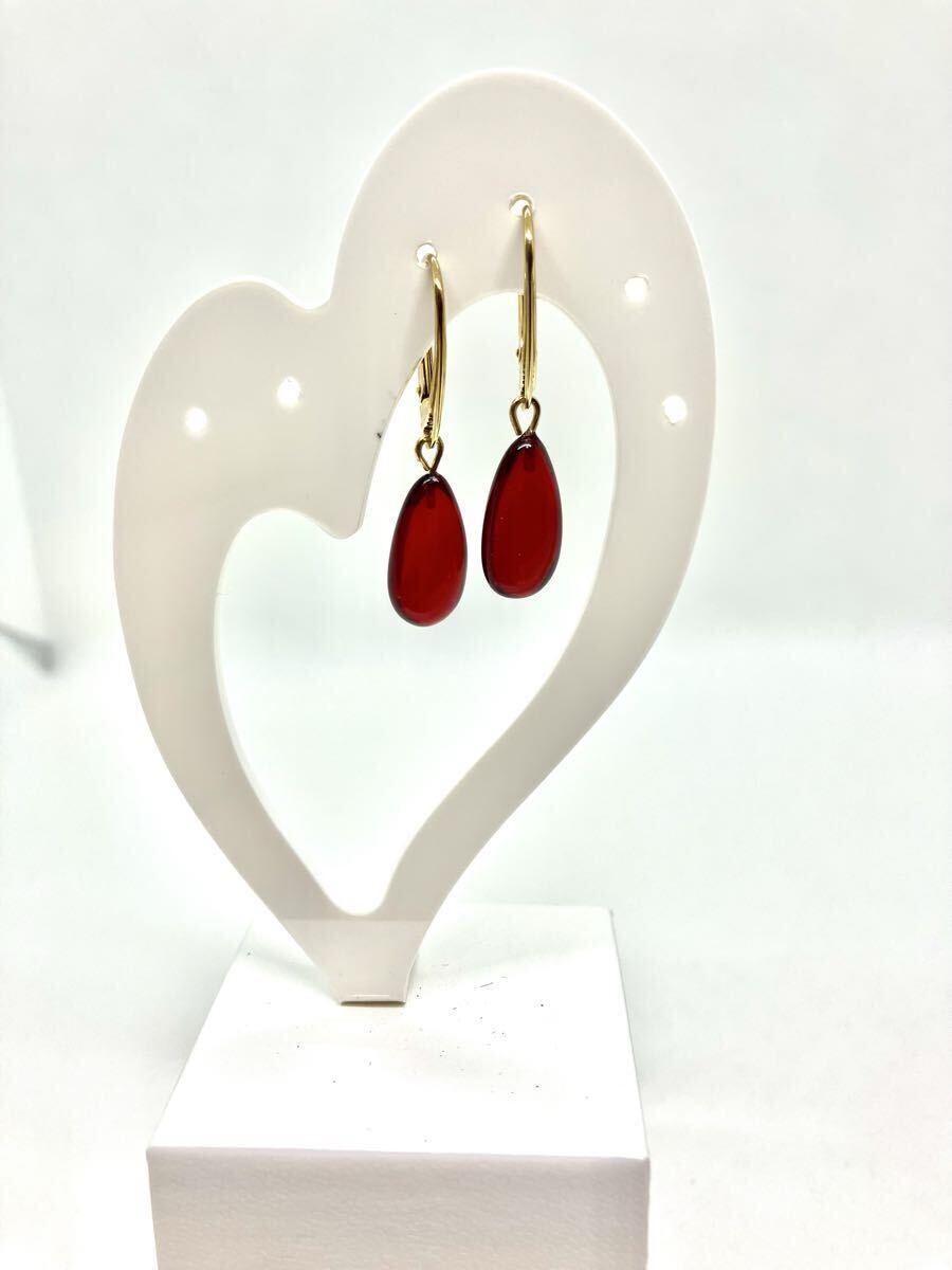 - 【新品】リトアニア産レッド琥珀ピアス/チェリーアンバー/こはくコハク/揺れるデザイン/フックタイプ/天然石